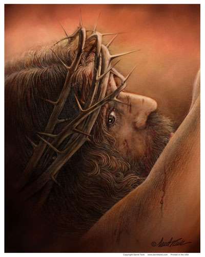 у ног, и шепчет: "Телка, слазь с креста!"