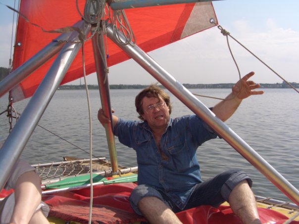 Разыгрался шторм. Сильный ветер и волны относили плот все дальше и дальше от берега. Горе-мореплаватели попытались управлять судном при помощи весел, но они тут же сломались. Началась паника. Брат бы конечно доплыл, но бросить девчонок и в голову не пришло. Он начал рассказывать, про Иисуса, как Он ходил по воде, как усмирял бурю, это помогло, немножко успокоились. Плот все несло непонятно куда и как, и тут случилось самое интересное: наступил страшный холод (на пассажирах практически ничего серьезного одето не было). Стали резать паруса, чтобы хоть как-то согреться. Но это не очень помогало. Опустилась ночь, светились только холодные, безразличные звезды вверху и зловещие огни ОбьГЭС впереди. Брат боялся только за то, чтобы его спутниц не смыло с плота холодной волной. Когда девушки перестали отвечать на вопросы, Костя начал молиться. Потом он рассказывал, что это было так здорово, он никогда не ощущал такой близости к Богу. Спустилась такая благодать, что в кромешной тьме брат не видел, но совершенно точно знал, что они уже плывут домой и что все теперь будет отлично. Девушки запели песни. Возле пляжа «Неоком» им кто-то шел навстречу, включили прожектор, а наши путешественники тут же грянули «Вставай, пр.заклейменный…» Прожектор моментально погасили и…тишина…